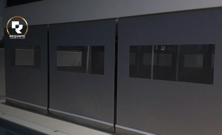 • Versatilidade de materiais: disponível em lona vinílica para proteção total ou tela solar para controle da luz, mantendo a ventilação.